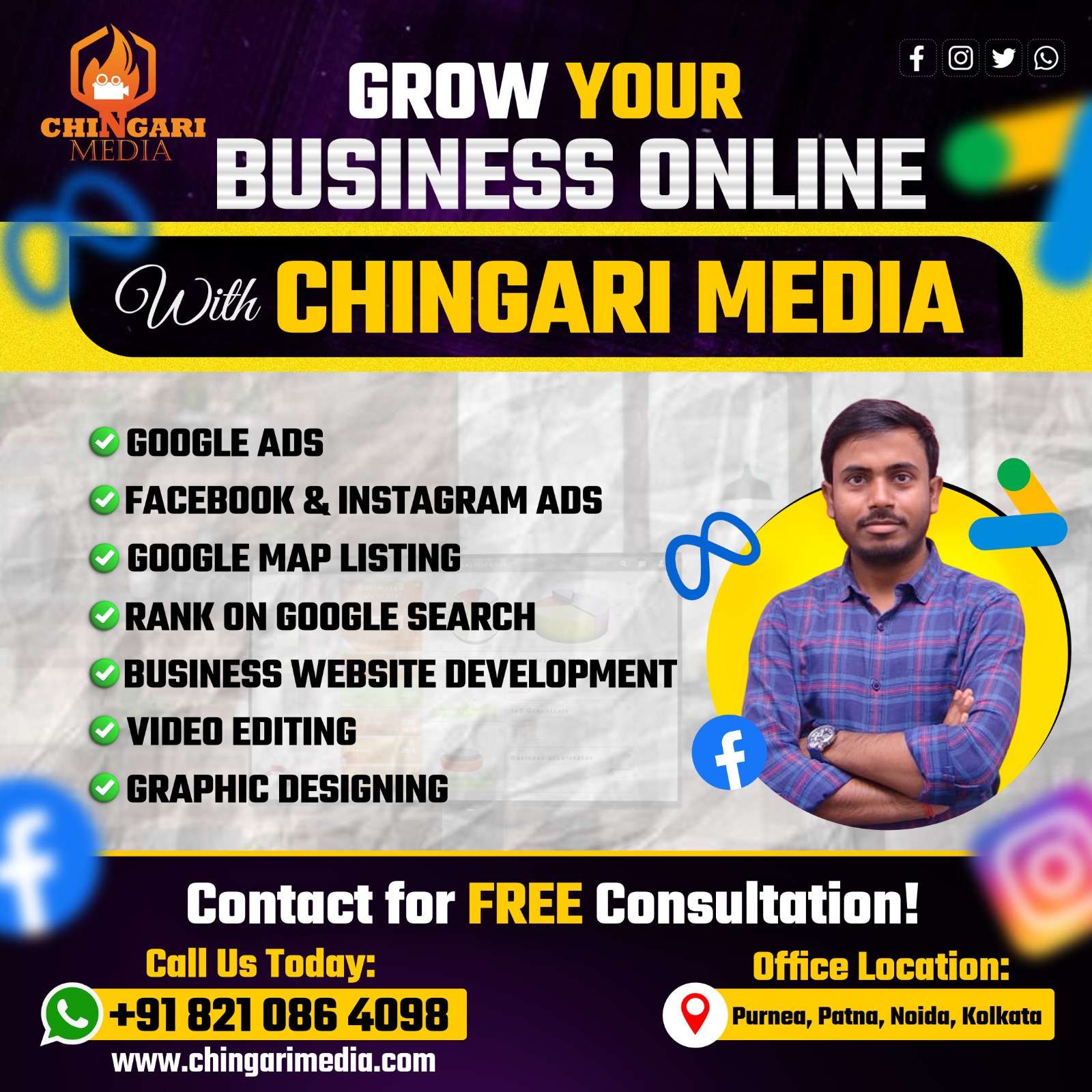 Purnea is growing fast — coaching institutes, shops, startups, service providers, and local brands are all competing for attention. Traditional marketing alone is no longer enough.