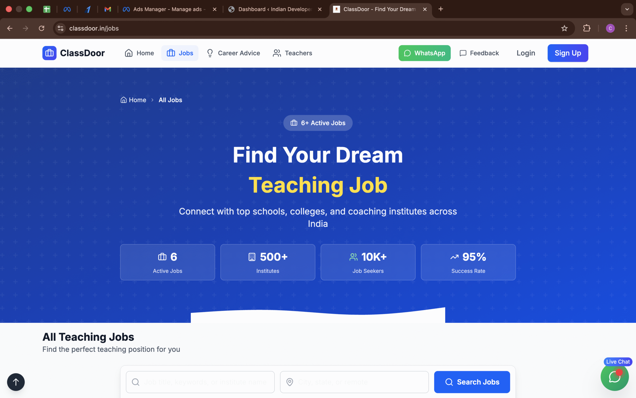Classdoor.in is a specialized education job portal in India that connects teachers, education professionals, and job seekers with schools, colleges, and institutes looking to hire quality staff. Unlike generic job sites, Classdoor focuses exclusively on education-related opportunities — including teaching, administration, training, counseling, and support roles.